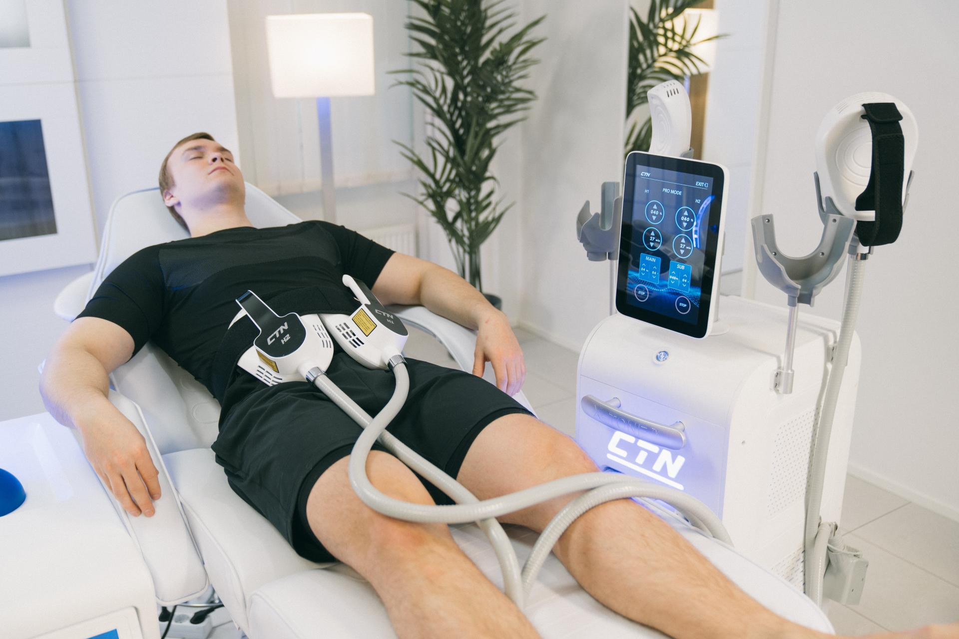 MMS-hoidot ovat jopa kymmenen kertaa tehokkaampia perinteiseen lihaskuntoharjoitukseen verrattuna. Yksi 30 minuutin hoito vastaa viiden tunnin lihaskuntoharjoitusta. Hoidon aikana lihakseen ei synny maitohappoa, jolloin hoidettavan alueen lihakset eivät myöskään kipeydy normaaliin lihaskuntoharjoittelun jälkeiseen lihaskipuun nähden.